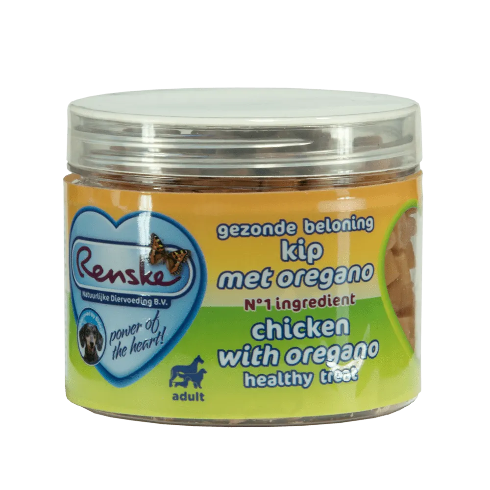 Ideal als verantwortungsvoller Snack oder Trainingsleckerli! Eine Belohnung in Herzform mit Huhn als Hauptzutat, 90%. Die Belohnungen sind für Hunde aller Rassen ab 9 Wochen geeignet. Ideal in Kombination mit dem Renske Variationsmenü. Auch für diese Belohnung wurde nur eine Proteinquelle verwendet. Somit können auch Hunde mit einer Allergie oder Unverträglichkeit gegen eine bestimmte Proteinquelle die Belohnungen genießen.