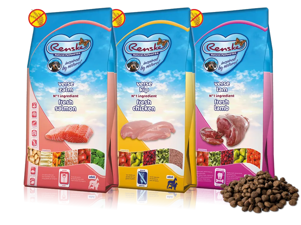 Renske Super Premium Dry Food is 100% natural, gluten free, and prepared with fresh meat or fresh fish as the main ingredient. In combination with vegetables, fruit, herbs, minerals, vitamins and trace elements this provides an ideal variety of natural ingredients. Very tasty and easy to digest!