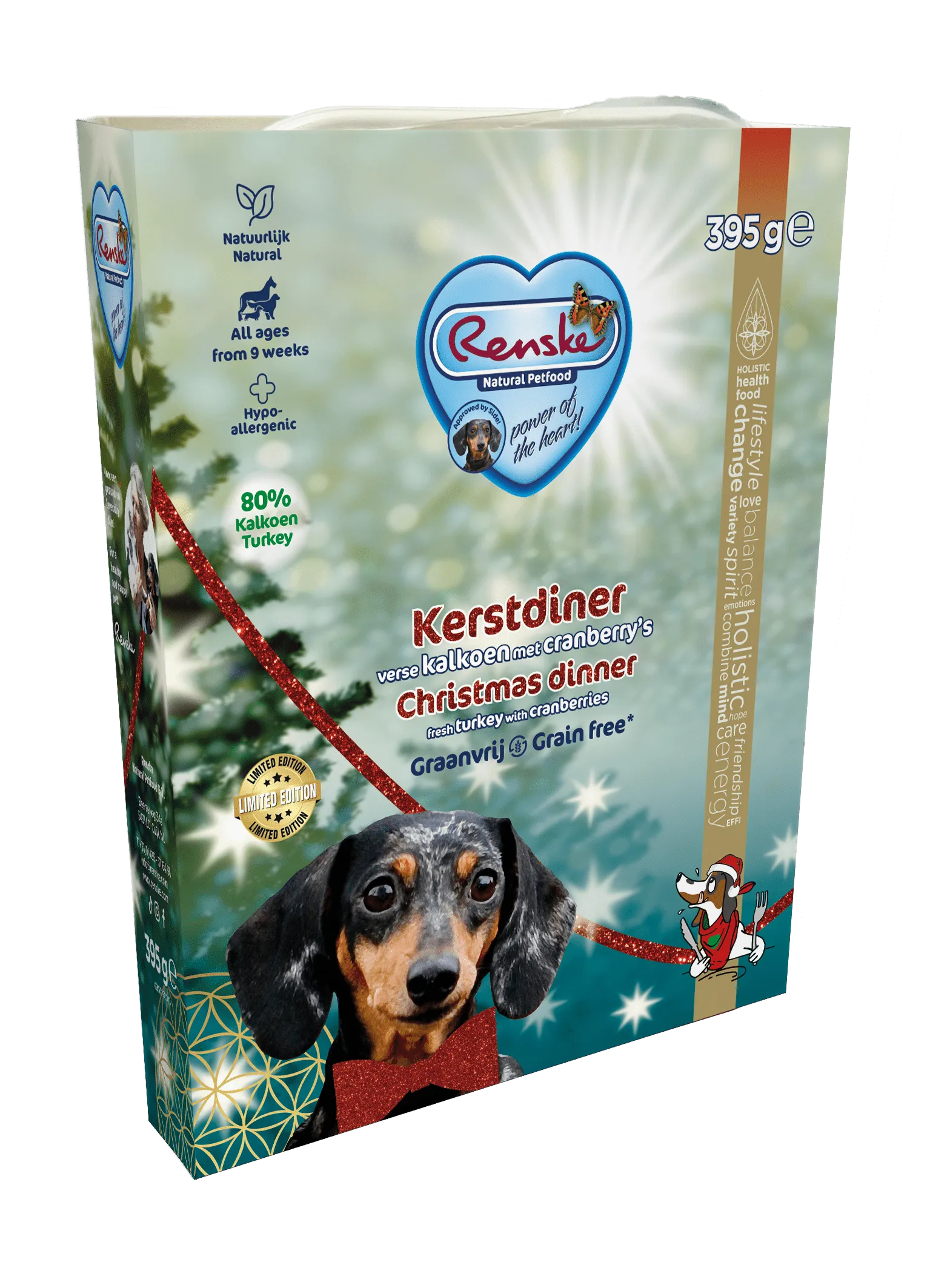 Renske gedämpftes Frischfleischfutter Weihnachtsdinner ist ein Gericht für junge und erwachsene Hunde aller Rassen ab 9 Wochen.