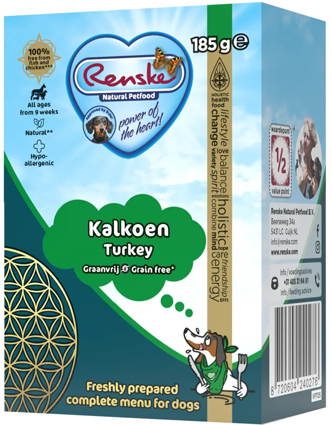 Renske frisch zubereitete Fleischmahlzeit mit Pute ist ein gluten- und getreidefreies Komplettfutter für junge, erwachsene und ältere Hunde aller Rassen ab 9 Wochen. Das Produkt enthält 55 % frisch zubereitete Pute und wird mit leckerem Gemüse ergänzt. Die hochwertigen Zutaten machen die Mahlzeiten leicht verdaulich und für wählerische Esser geeignet! In handlichen Kleinportionen verpackt, ideal auch für unterwegs oder im Urlaub.