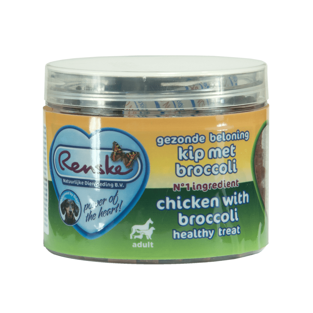 Ideal als verantwortungsvoller Snack oder Trainingsleckerli! Eine Belohnung in Herzform mit Huhn als Hauptzutat, 85%. Die Belohnungen sind für Hunde aller Rassen ab 9 Wochen geeignet. Ideal in Kombination mit dem Renske Variationsmenü. Auch für diese Belohnung wurde nur eine Proteinquelle verwendet. Somit können auch Hunde mit einer Allergie oder Unverträglichkeit gegen eine bestimmte Proteinquelle die Belohnungen genießen.