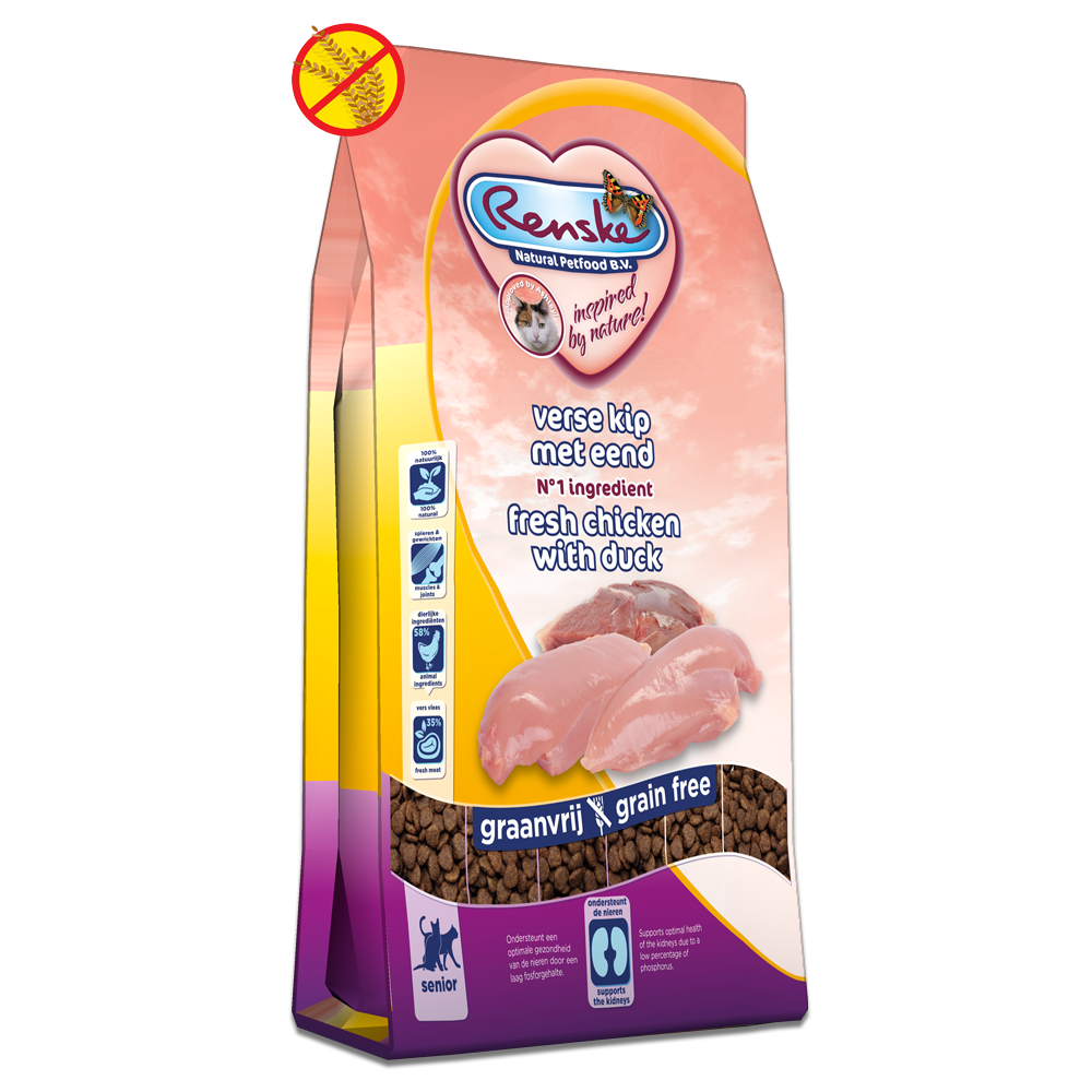 Store the pet food in a dry, cool place. Make sure you always provide your cat with fresh drinking water. Do you want to pamper or reward your cat? Give it Renske Healthy Treats, healthy and tasty!
