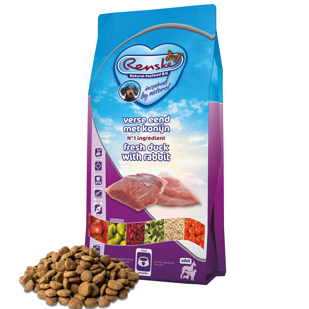 It is best to start by offering your dog only Renske Fresh Meat Meals for three days, as this will produce the necessary digestive enzymes in the intestines. You can subsequently introduce Renske kibbles. These can be mixed with the Fresh Meat Meals. You can then either switch completely to dry food, or alternatively, continue to mix. Our food products are very easy to digest, thanks to the high fresh meat or fresh fish content. This rarely causes problems when switching.