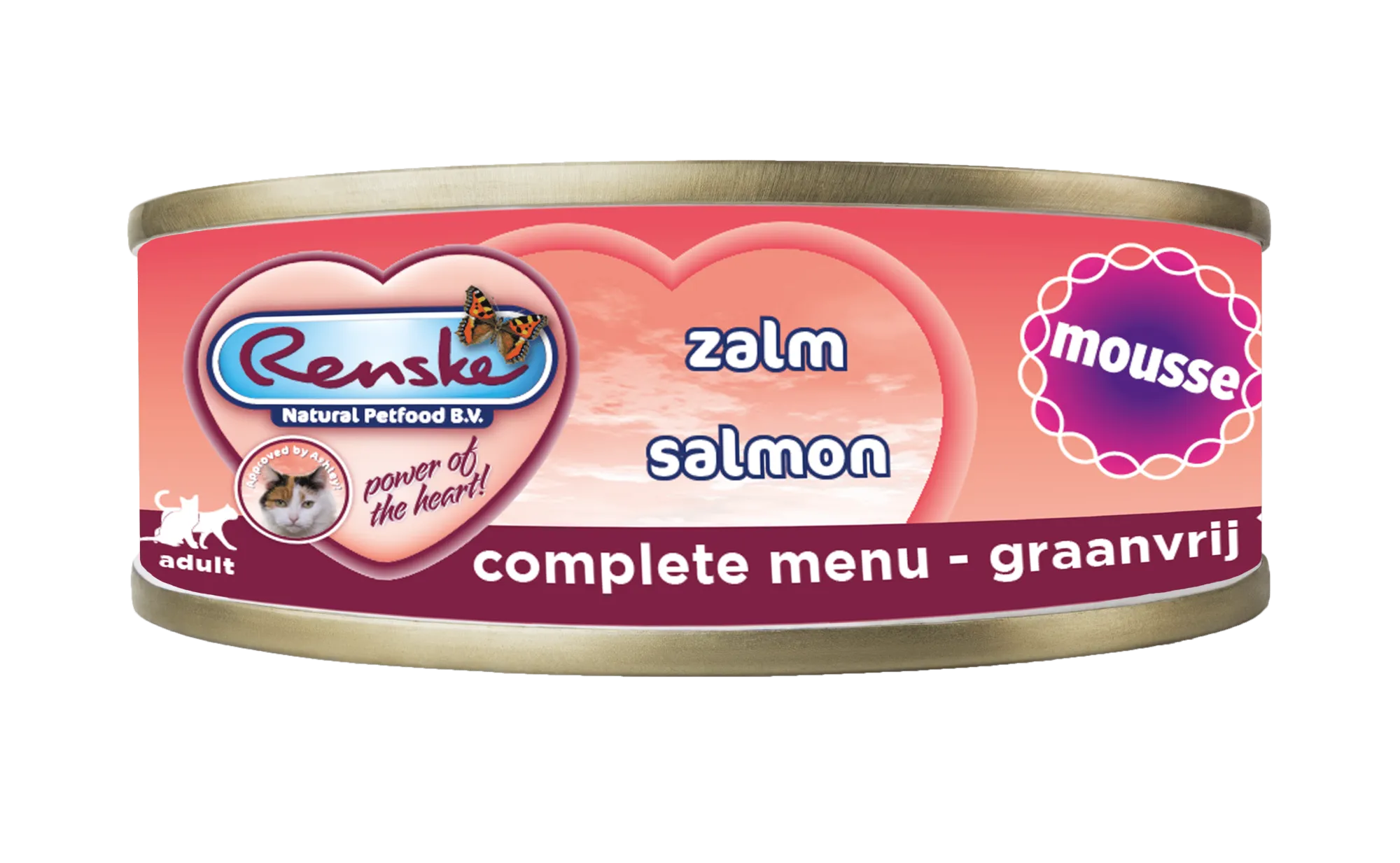 Renske 70g - le saumon est un délicieux aliment humide complet pour chats. En raison de la forte teneur en saumon, c'est un repas très digestible et savoureux. Ce repas est totalement exempt de céréales, de sucre, de sel, de conservateurs chimiques, de colorants, d’arômes et d’exhausteurs de goût.
