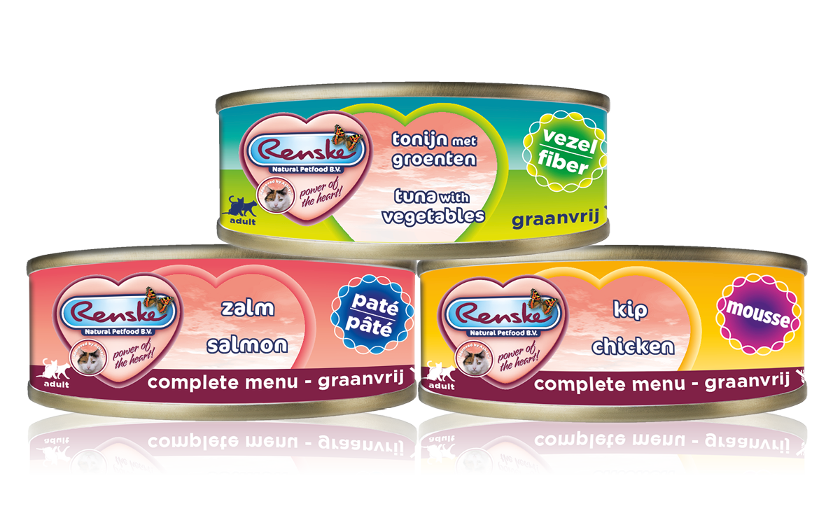 Les Renske Aliments humides pour chats sont disponibles en différentes saveurs en boîtes de 70gr. En outre, différentes textures sont disponibles : mousse, pâté et fibres.