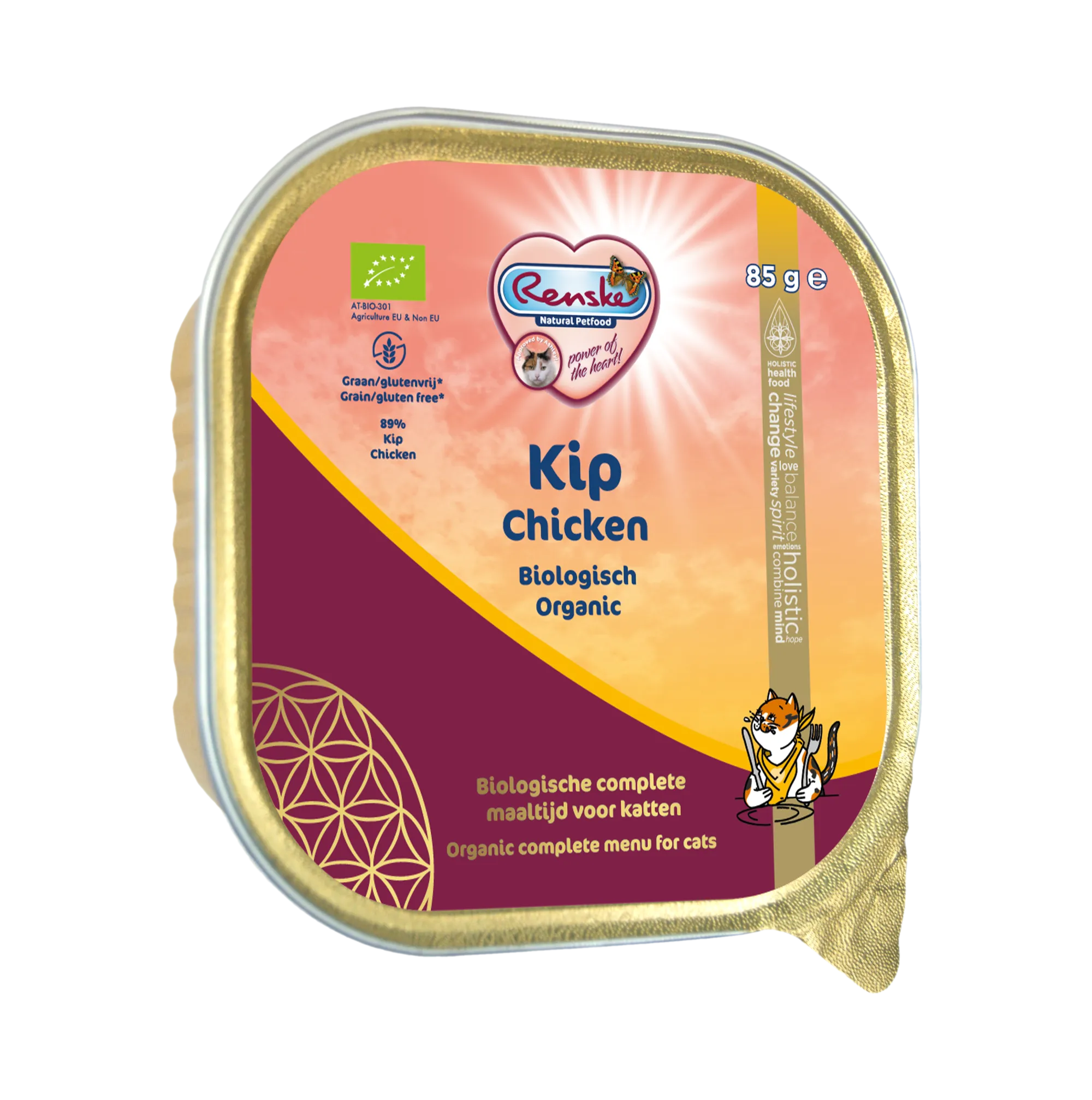 Repas Renske Frais Bio à la Viande de Poulet sans céréales est un repas de viande fraîche bio pour chats jeunes et adultes de toutes races.