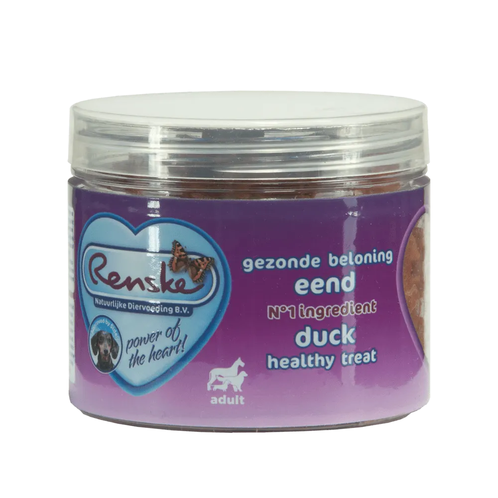 Idéal comme en-cas responsable ou comme bonbon d'entraînement ! Une récompense en forme de cœur avec du canard comme ingrédient principal, 91%. Les récompenses sont adaptées aux chiens de toutes les races, à partir de 9 semaines. Idéal en combinaison avec le menu variation de Renske. De plus, dans cette récompense, une seule source de protéines est utilisée. Ainsi, les chiens présentant une allergie ou une intolérance à une source de protéines particulière peuvent également profiter des récompenses.