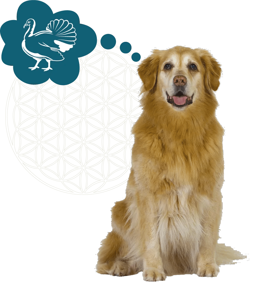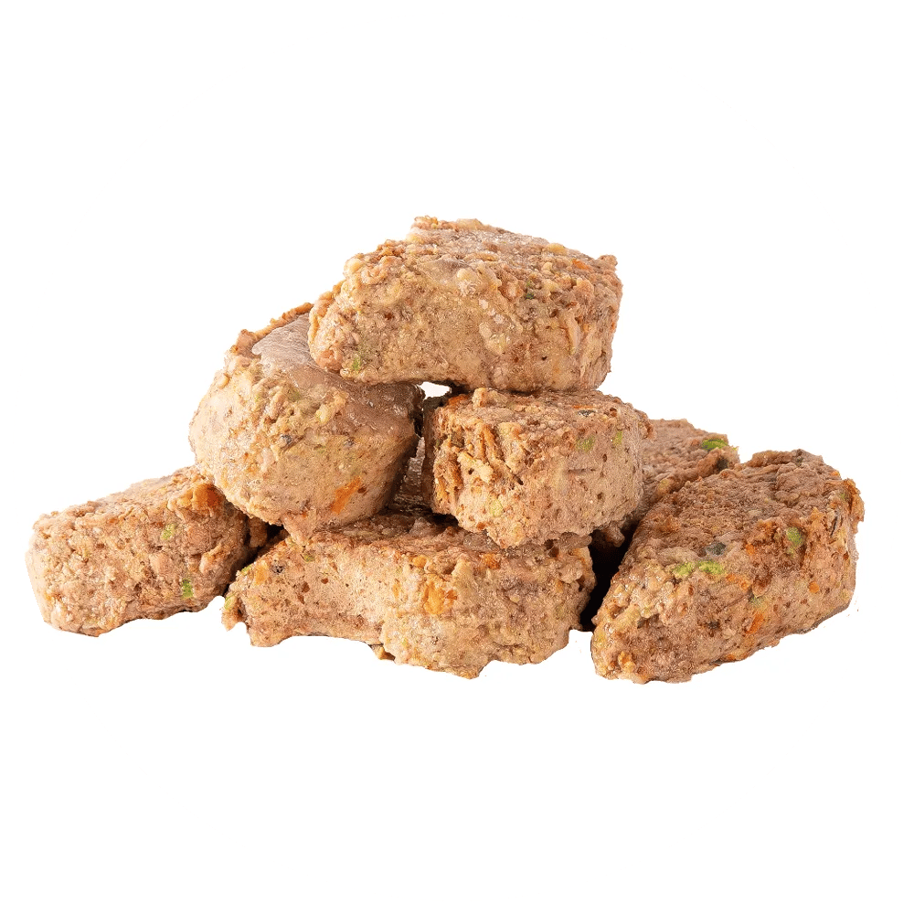 Viande de dinde fraîche congelée (73%), carotte (8%), épinards (6%), foie de dinde (5%), graines de lin (4%), pomme (2%), minéraux, huile de colza.