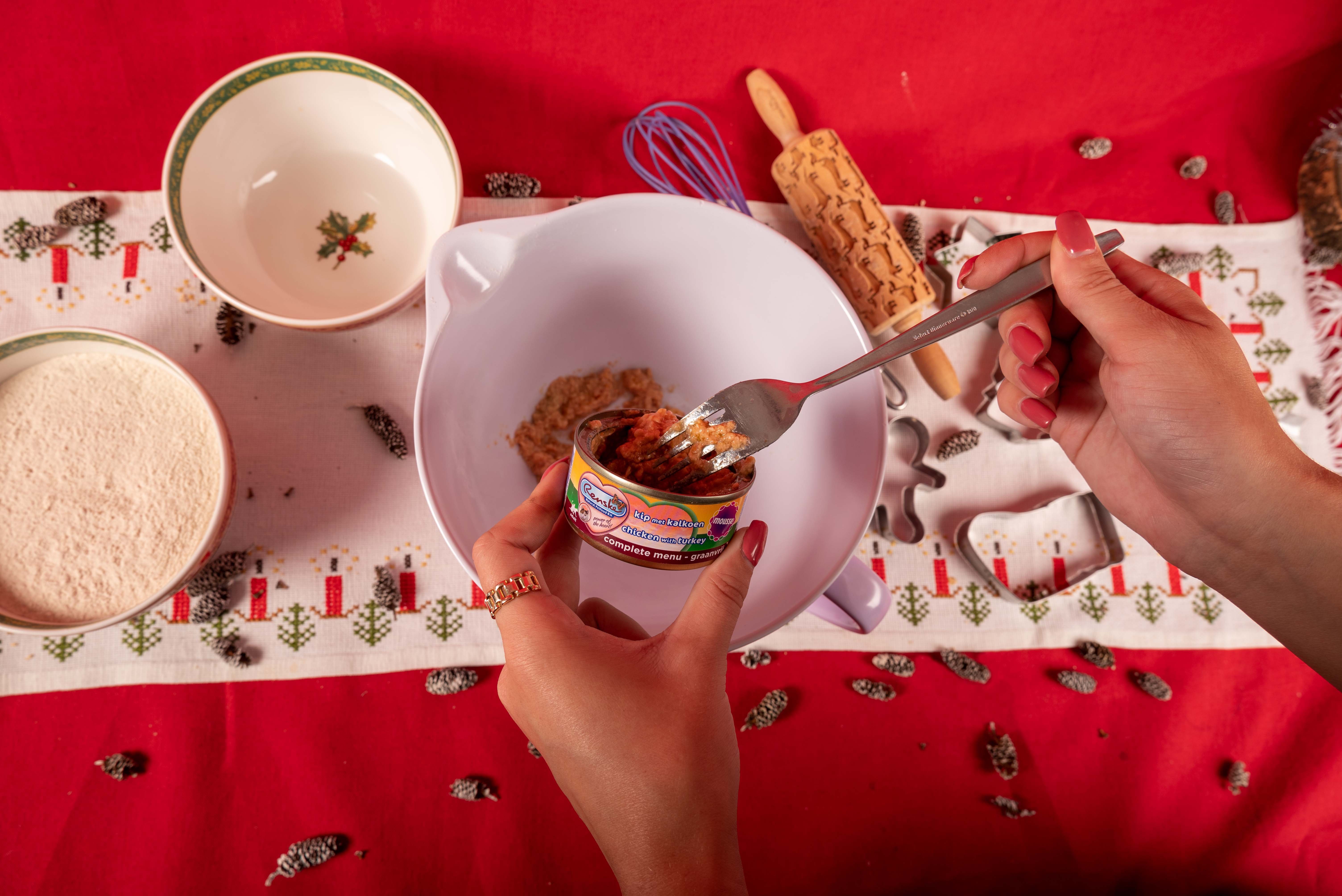 Tip: je kunt jouw kerstkoekjes nog extra versieren met bijvoorbeeld wat natvoer, Golddust Heal of Gezonde Beloningen.