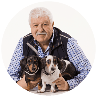 Samen met Renske zijn we gestart met de import van hondenvoer uit de UK. Een stap die we gezet hebben vanuit de liefhebberij voor honden en toen speciaal het ras de Golden Retriever. We hebben samen heel veel fijne maar vooral lieve honden gehad waarvan we ons de speciale dingen nog vaak herinneren. We hebben veel verschillende rassen gehad van onze eerst hond Mungo een langharige Duitse Herder, daarna een rode langharige teckel. Heel veel Goldens en een Ierse Rood Wit Setter die heel bijzonder was. Tegenwoordig hebben we kleine kortharige teckeltjes. Die kunnen we overal mee naar toe nemen (show etc.) en het was altijd al een oude liefde. Daarnaast past het karakter wel bij ons.