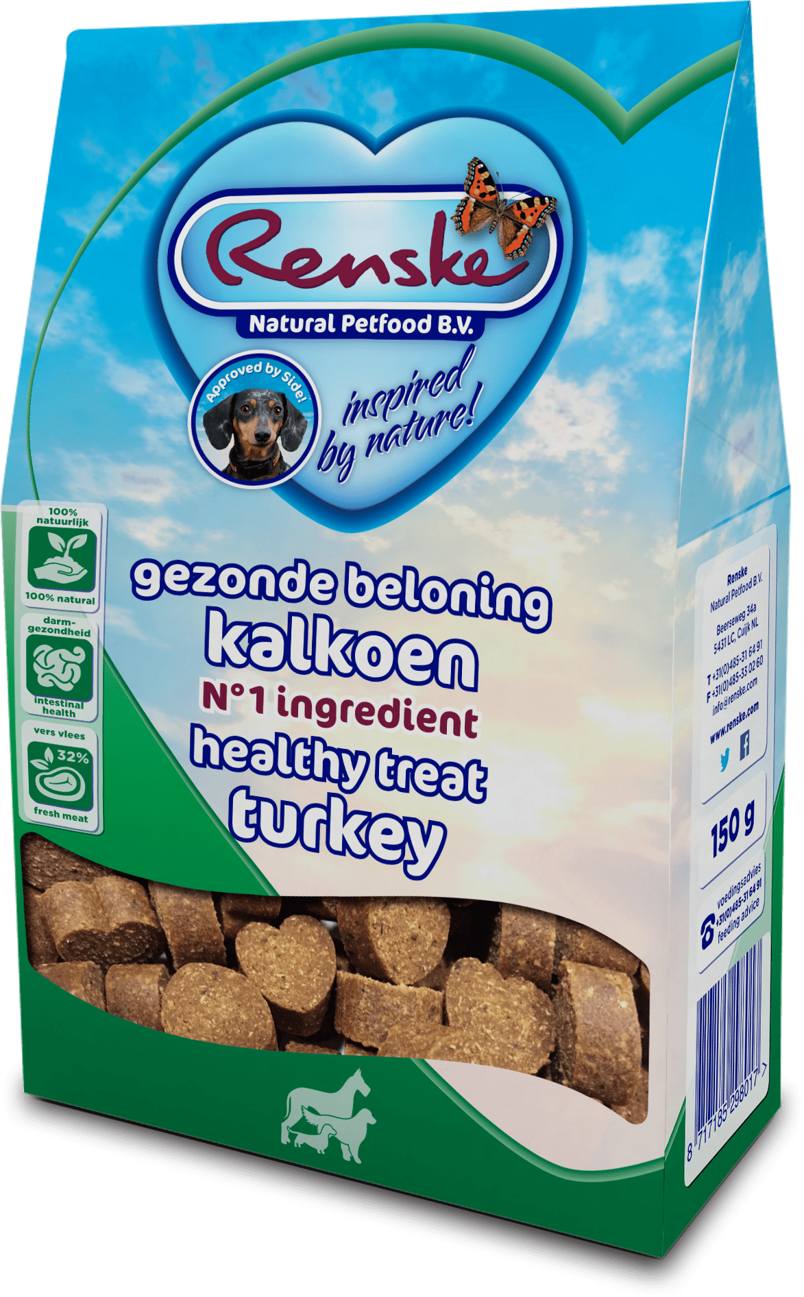 Renske Gezonde Beloningen zijn een goede, smakelijke aanvulling op het dagelijkse menu van jouw hond. Geschikt als beloning, aanvulling of tijdens de training.