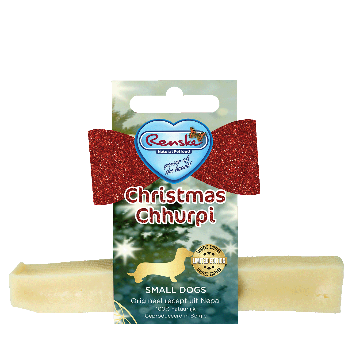 Deze Spirulina Christmas Chhurpi is een 100% natuurlijke kauwsnack voor honden, geïnspireerd op een eeuwenoud recept uit de Himalaya. Handgemaakt volgens traditionele methodes, biedt deze harde kaassnack een onweerstaanbare smaak én langdurig kauwplezier. Verrijkt met spirulina,Omega-3 vetzuren, gistglucanen en zink ondersteunt deze snack een gezonde huid, glanzende vacht en sterke weerstand. Dankzij het hoge eiwitgehalte (66%) en lage vetpercentage (8,5%) is het een verantwoorde keuze voor jouw viervoeter.