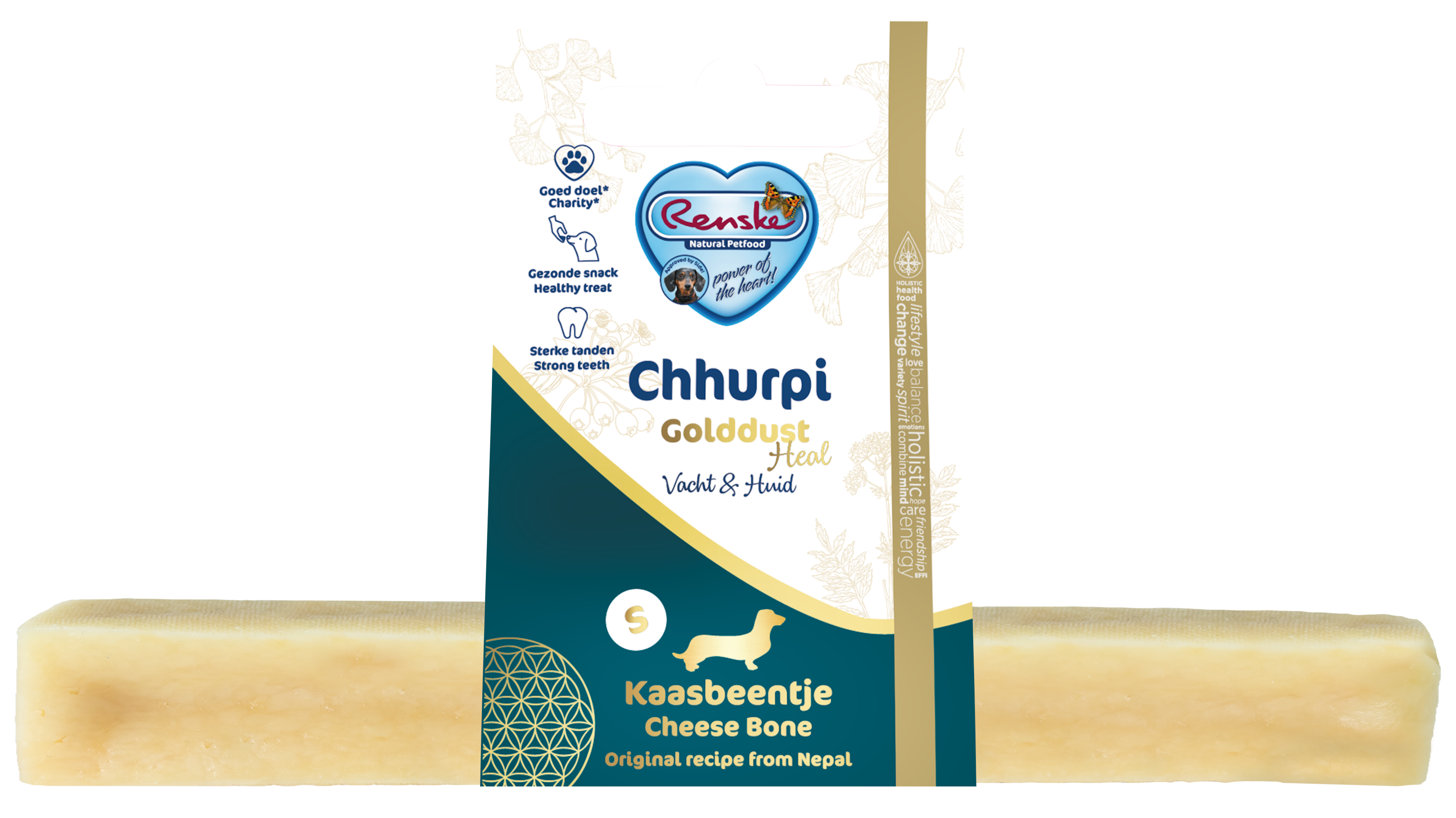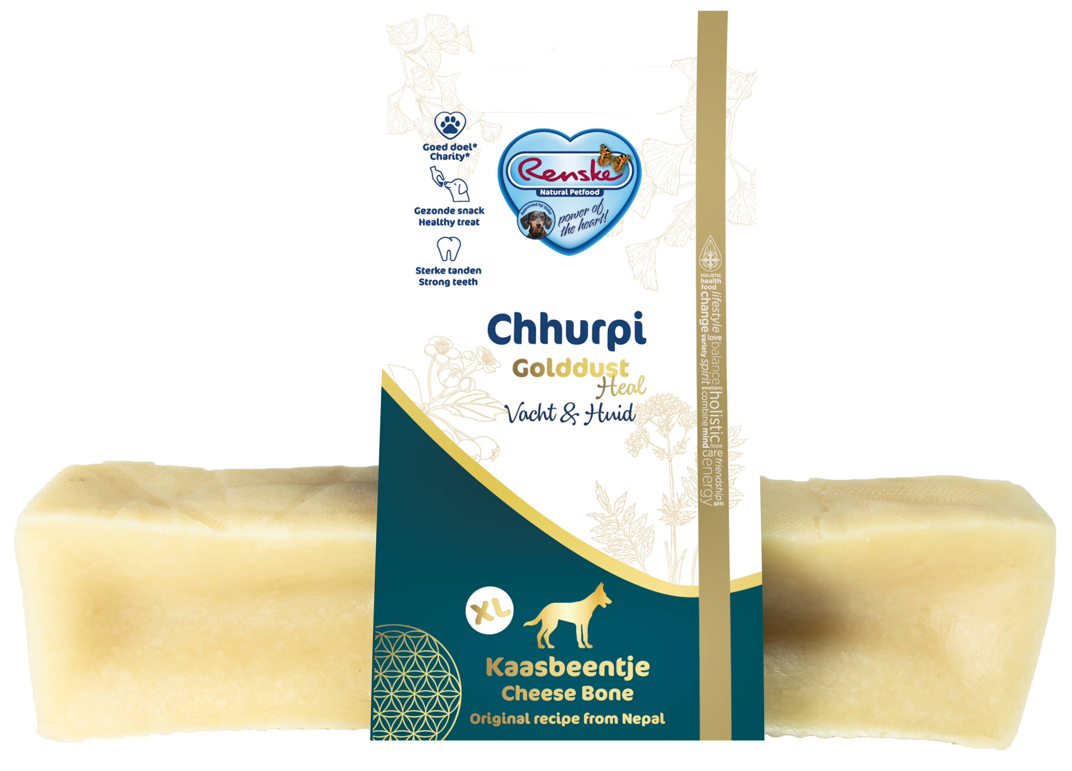 De Renske Golddust Chhurpi is 100% natuurlijk, vegetarisch, gluten- en graanvrij. Een van de grote voordelen is dat deze snack een hoge dichtheid heeft waardoor de hond meer moeite moet doen om de chhurpi zacht te kauwen. Hierdoor is je hond verzekerd van urenlang kauwplezier! Daarnaast is het vele kauwen goed voor het gebit en kan dit vorming van tandplak aanzienlijk verminderen.
