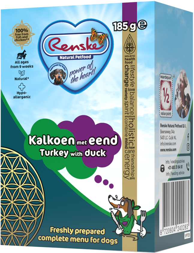Renske vers bereide vleesmaaltijd kalkoen met eend is een complete maaltijd voor jonge, volwassen en oude honden van alle rassen vanaf 9 weken. Het product bevat 65% vers bereide kalkoen met eend en is aangevuld met rijst en heerlijke groenten. Door de hoogwaardige ingrediënten zijn de maaltijden licht verteerbaar en goed voor moeilijke eters! In handige kleine porties verpakt, ook ideaal voor onderweg of op vakantie.
