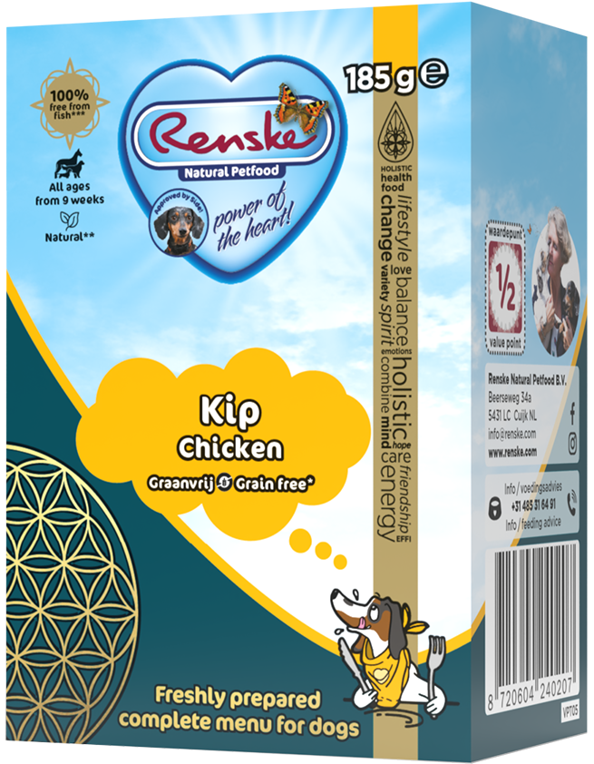 Renske vers bereide vleesmaaltijd met kip is een complete, gluten- en graanvrije maaltijd voor jonge, volwassen en oude honden van alle rassen vanaf 9 weken. Het product bevat 60% vers bereide kip en is aangevuld met heerlijke groenten. Door de hoogwaardige ingrediënten zijn de maaltijden licht verteerbaar en goed voor moeilijke eters! In handige kleine porties verpakt, ook ideaal voor onderweg of op vakantie.