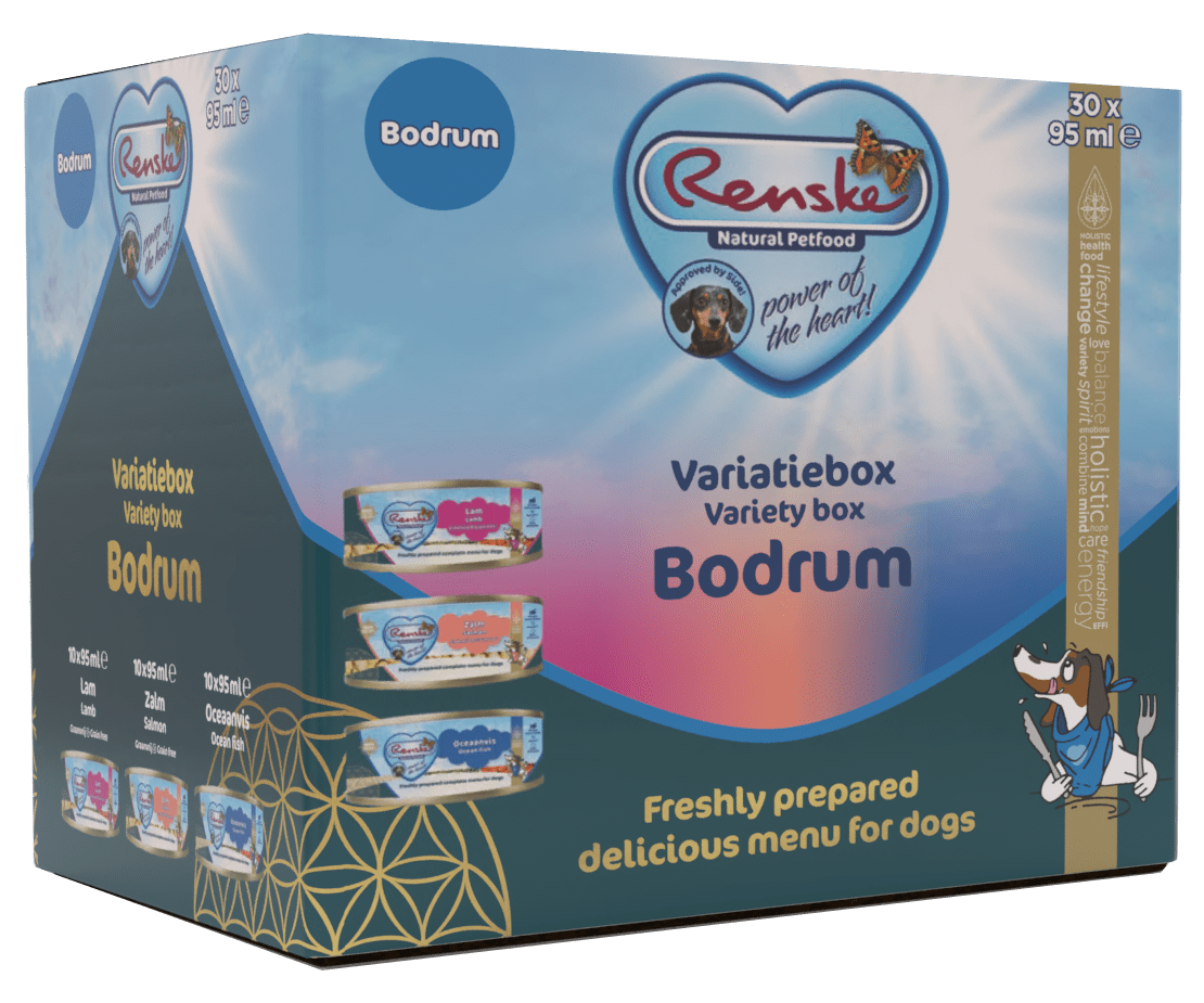 De Renske variatiebox Bodrum is een handige variatieverpakking met drie heerlijke varianten Renske Vers Bereid 95g! Met deze box kun je gemakkelijk variëren en combineren. De box bevat 10x lam (graanvrij), 10x zalm (graanvrij) en 10x oceaanvis.