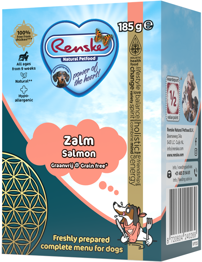 Renske vers bereide vismaaltijd met zalm is een complete, gluten- en graanvrije maaltijd voor jonge, volwassen en oude honden van alle rassen vanaf 9 weken. Het product bevat 55% vers bereide zalm. Door de hoogwaardige ingrediënten zijn de maaltijden licht verteerbaar en goed voor moeilijke eters! In handige kleine porties verpakt, ook ideaal voor onderweg of op vakantie.