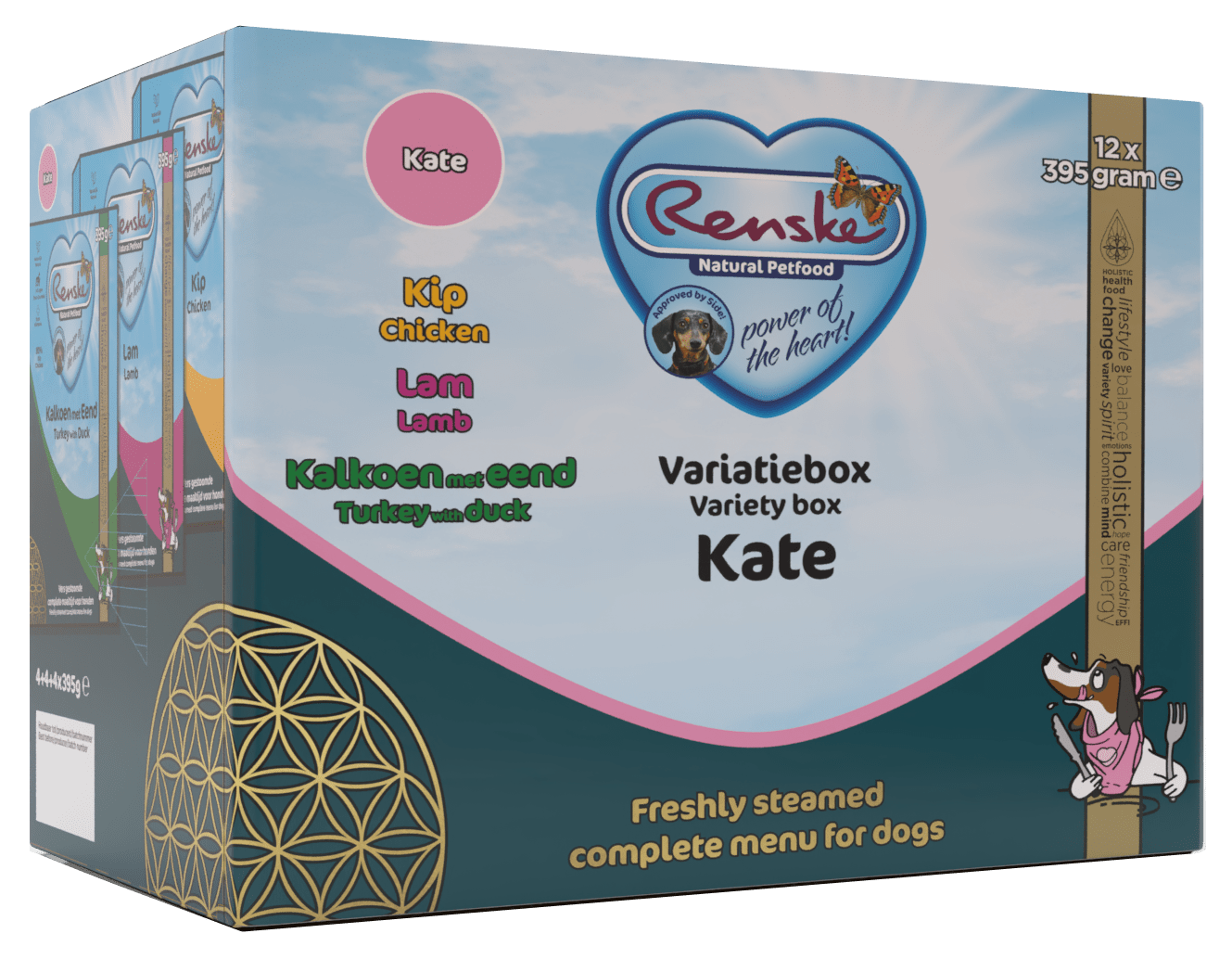 De Renske variatiebox Kate is een handige variatieverpakking met drie heerlijke varianten Renske Vers Gestoomd! Met deze box kun je gemakkelijk afwisselen. De box bevat 4x vers gestoomde kip, 4x vers gestoomde lam en 4x vers gestoomde kalkoen en eend.