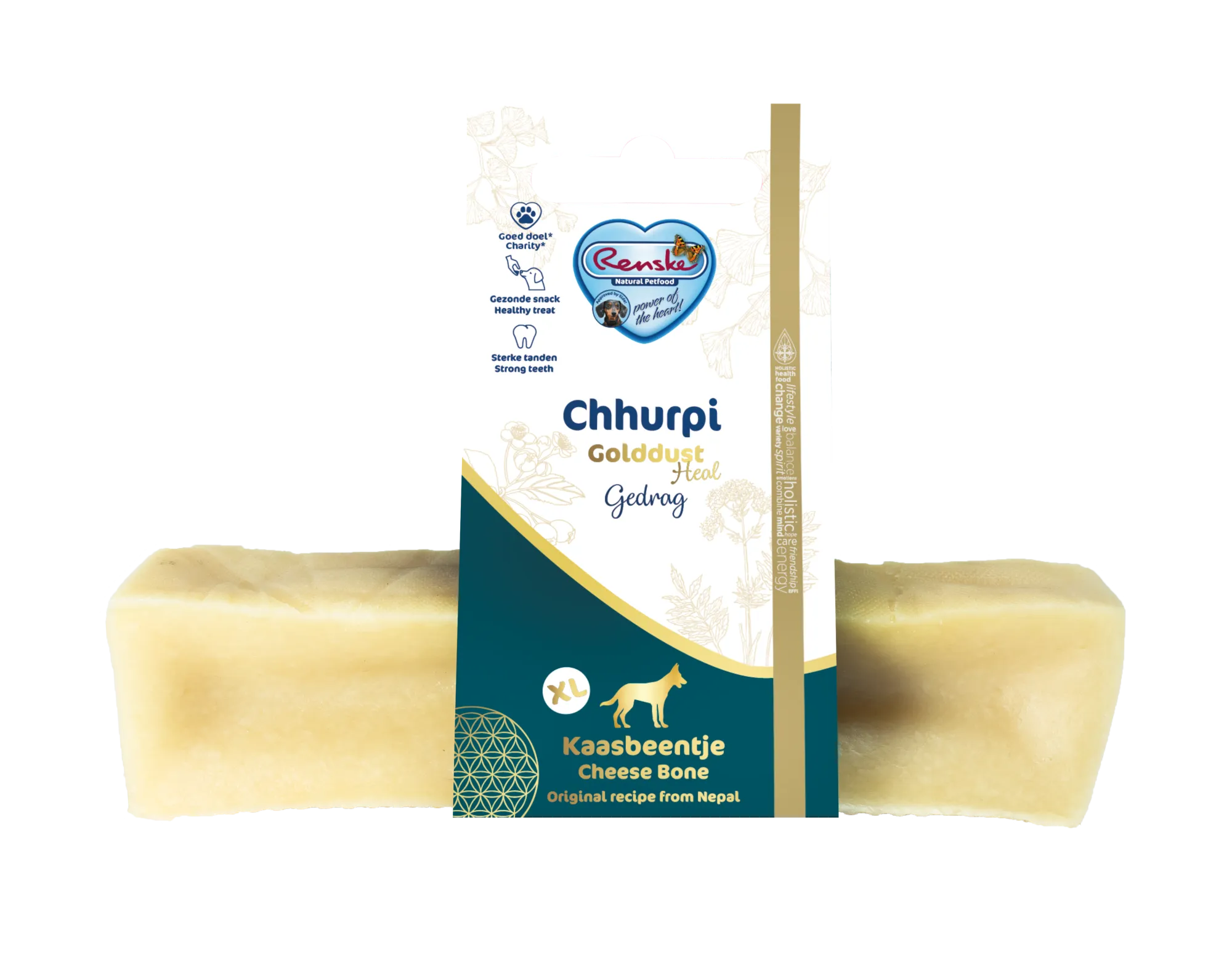 De Renske Golddust Chhurpi is 100% natuurlijk, vegetarisch, gluten- en graanvrij. Een van de grote voordelen is dat deze snack een hoge dichtheid heeft waardoor de hond meer moeite moet doen om de chhurpi zacht te kauwen. Hierdoor is je hond verzekerd van urenlang kauwplezier! Daarnaast is het vele kauwen goed voor het gebit en kan dit vorming van tandplak aanzienlijk verminderen.