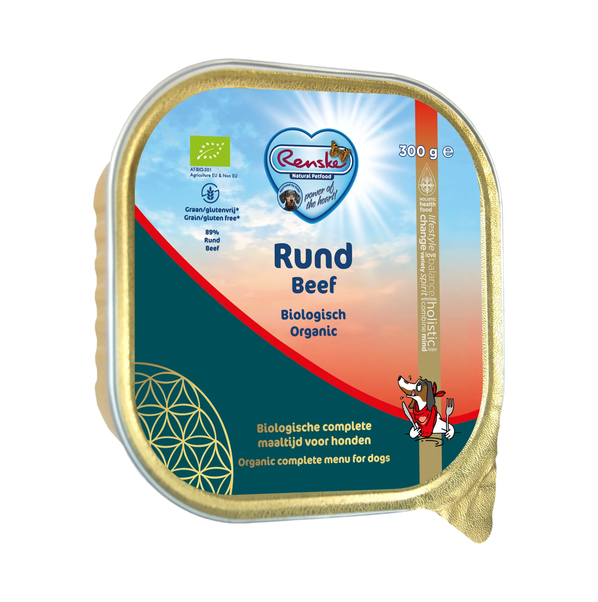 Renske's Biologische Vers Gestoomde Vlees Maaltijd met rund (graanvrij) is geschikt voor honden van alle rassen en alle leeftijden.