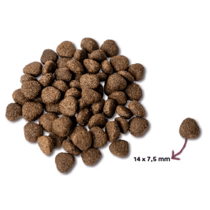 Dit droogvoer is verkrijgbaar in verpakkingen van 600g, 2kg, 6,5kg en 12kg.