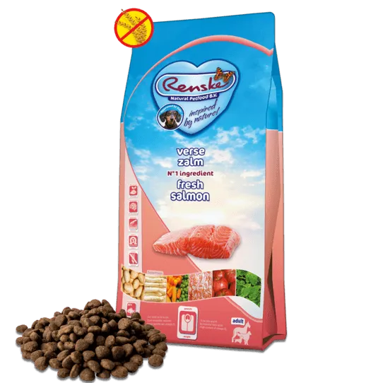 Contact opnemen met RenskeVerse bereide zalm (27%), aardappel (16%), zoete aardappel (16%), gedroogde zalm (12%), bietenpulp, erwten (6%), zalmolie, gedroogde krill (4%), biergist, mineralen, zalmbouillon, lijnzaad, gedroogde witte asperges (0,2%), gedroogde wortel (0,08%), gedroogde spinazie (0,08%), zeewier, beta-glucanen, gedroogde cranberries, gedroogde appel (0,04%), gedroogde peer, gedroogde broccoli, gedroogde tomaat, glucosamine (170 mg/kg), methylsulfonylmethaan (MSM) (170 mg/kg), chondroïtinesulfaat (120mg/kg).