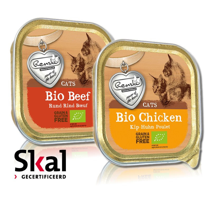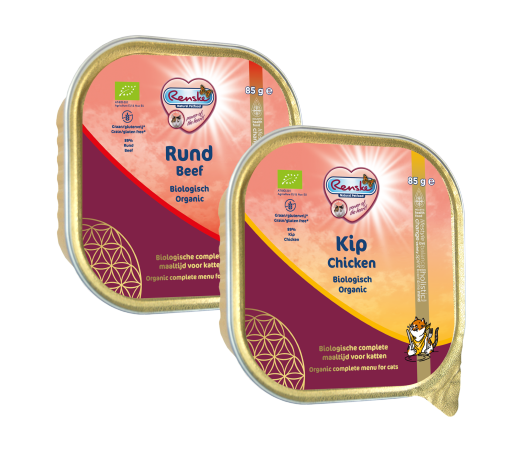 Renske's Biologische Vers Gestoomde Maaltijden voor katten zijn 100% natuurlijk, graanvrij en bevatten biologische ingrediënten.