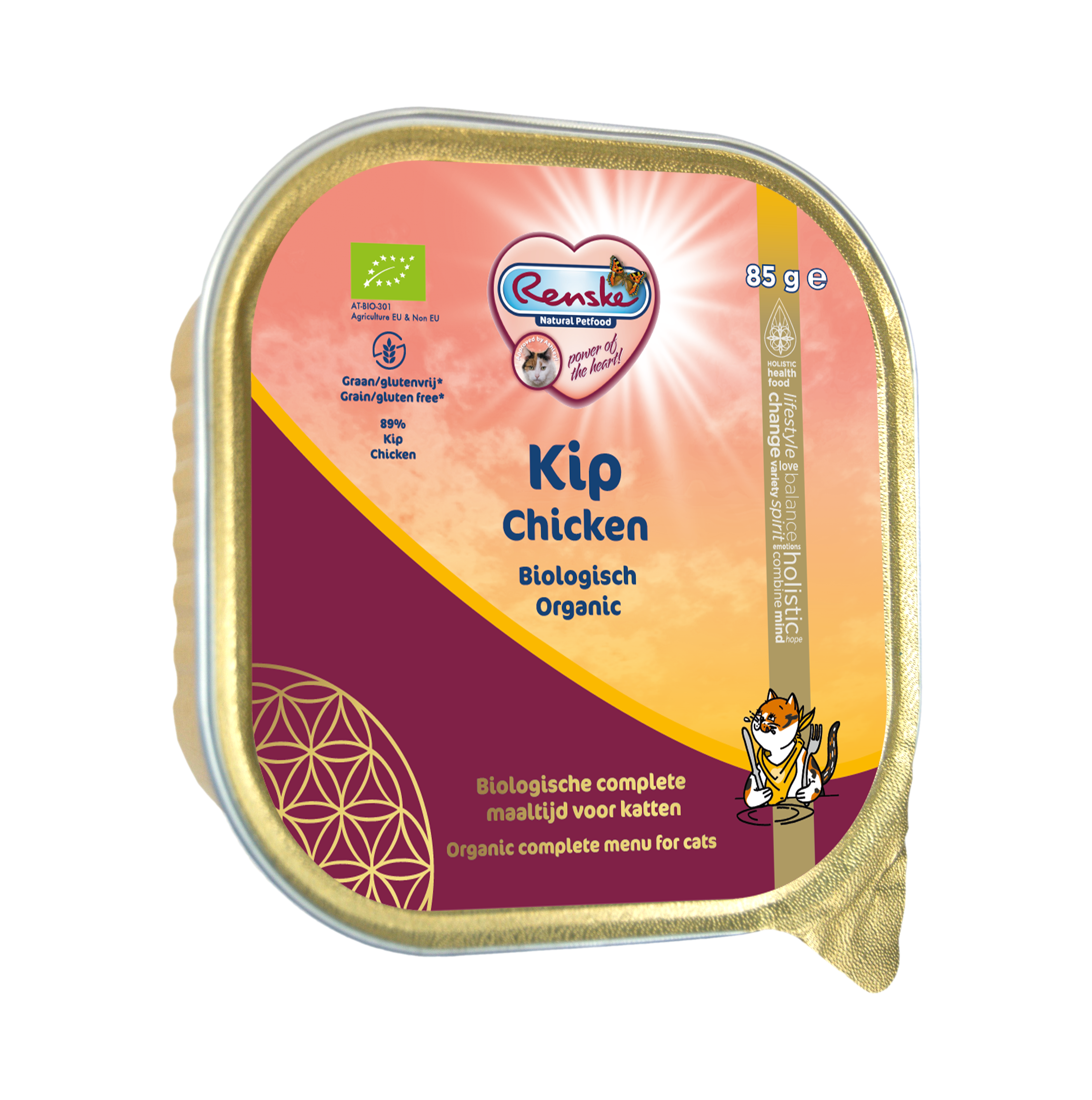 Renske Biologische Vers Vlees Maaltijd Kip graanvrij is een biologische Vers Vlees Maaltijd, voor jonge en volwassen katten van alle rassen.