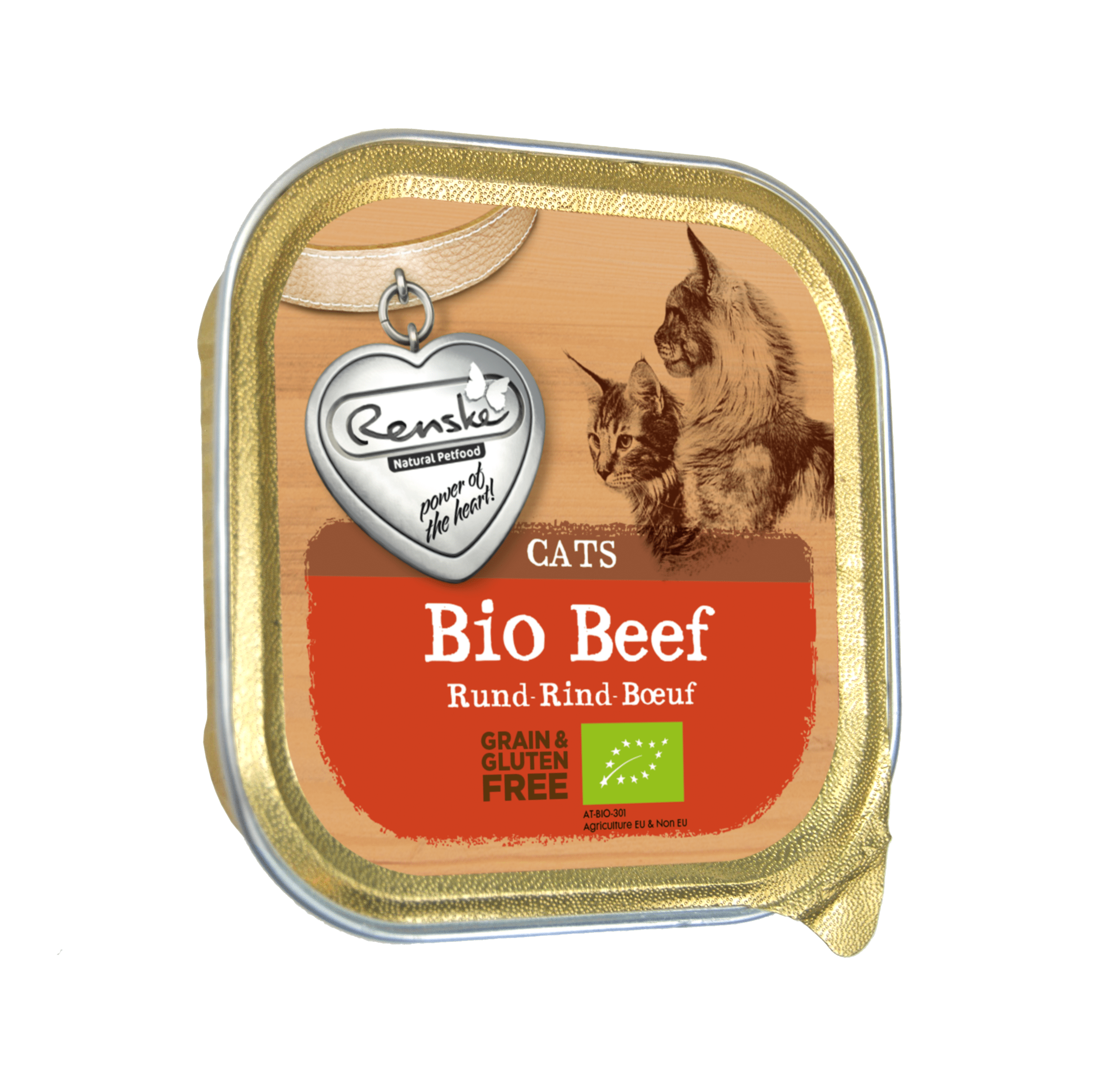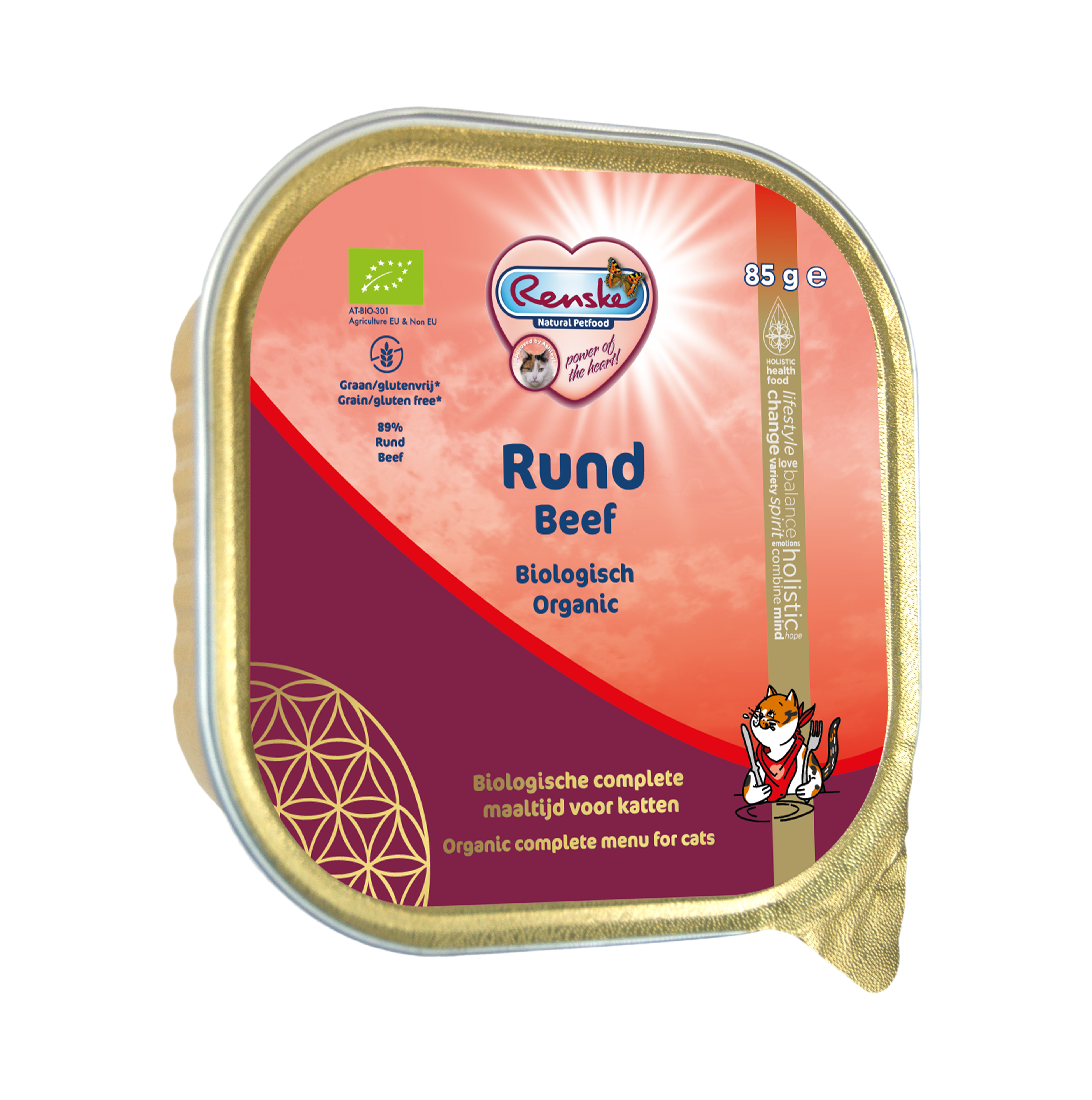 Renske's Biologische Vers Vlees Maaltijd met verse rund (graanvrij) is geschikt voor jonge, volwassen en oudere katten van alle rassen.