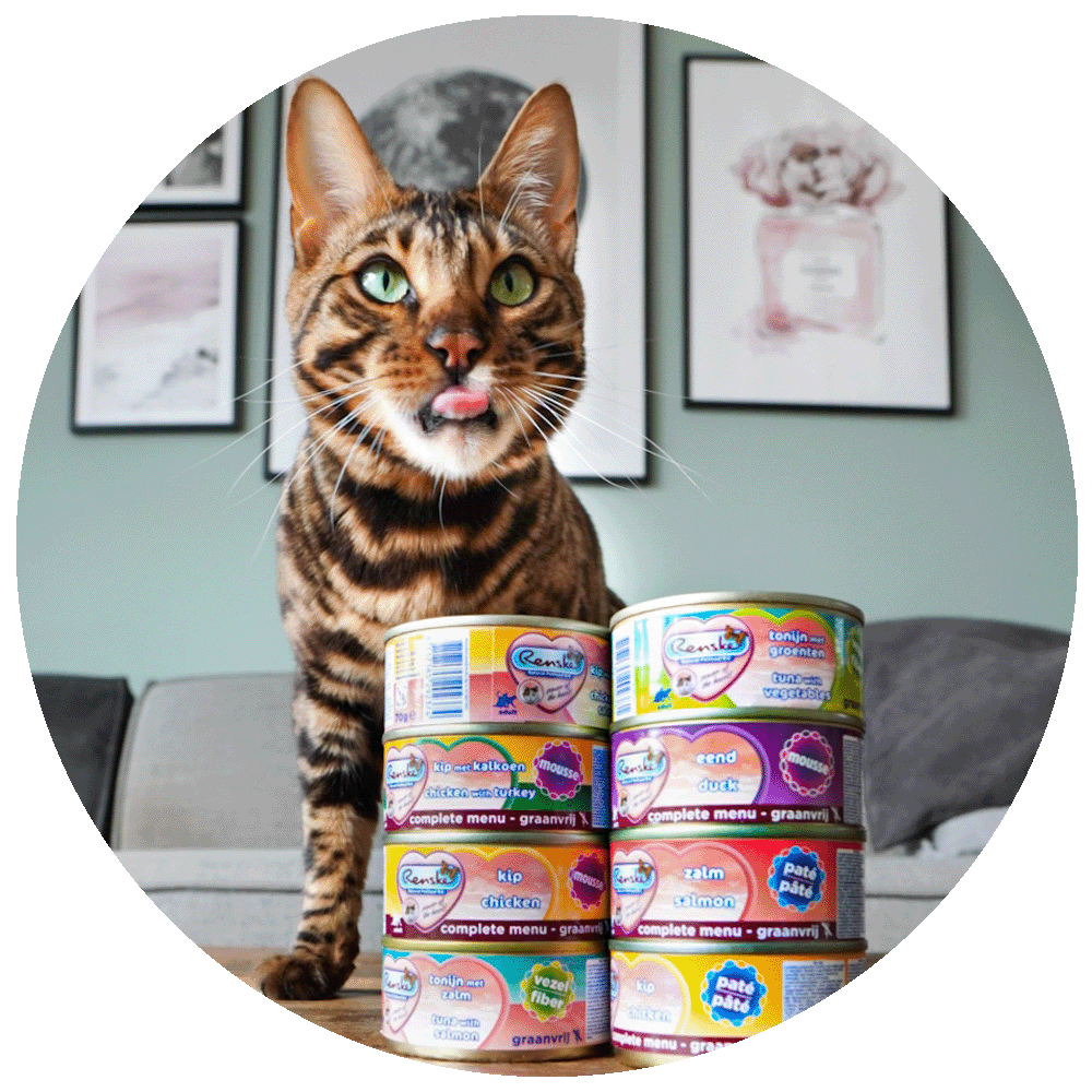 Deze lijn natvoer is gebaseerd op variatie en combinatie. Wij geloven dat variatie bijdraagt aan een gezond en sterk lichaam. Door gevarieerd te voeren ontstaan er minder snel intoleranties of allergieën bij je kat. Daarnaast houdt afwisseling het immuunsysteem wakker, zorgt het voor een goede darmflora en gaat het verveling tegen. Ook vinden we bij Renske dat katten niet dagelijks hetzelfde hoeven te eten, wij eten immers zelf ook het liefst elke dag wat anders.