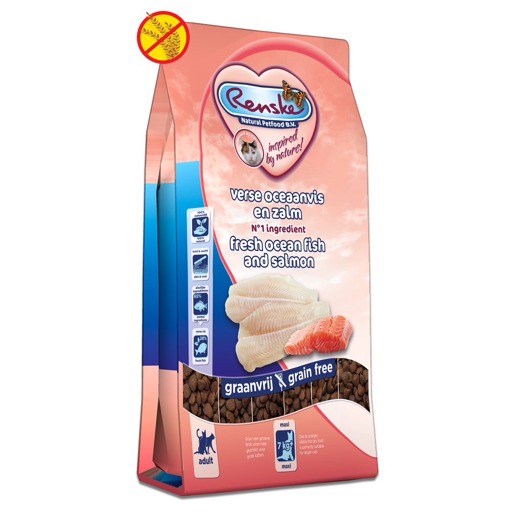 • Vers bereide oceaanvis als hoofdingrediënt (28%, totaal dierlijke ingrediënten 65%)
