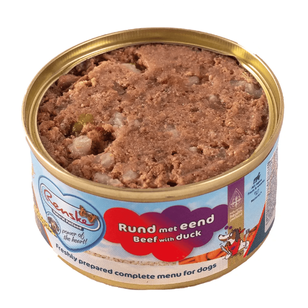 Renske Vers Bereide Vlees Maaltijd rund met eend is een complete maaltijd voor jonge en volwassen honden van alle rassen vanaf 9 weken. Het product bevat 50% vers bereide rund met eend en is aangevuld met rijst en heerlijke groenten. Door de hoogwaardige ingrediënten zijn de maaltijden licht verteerbaar en goed voor moeilijke eters! In handige kleine porties verpakt, ook ideaal voor onderweg of op vakantie.