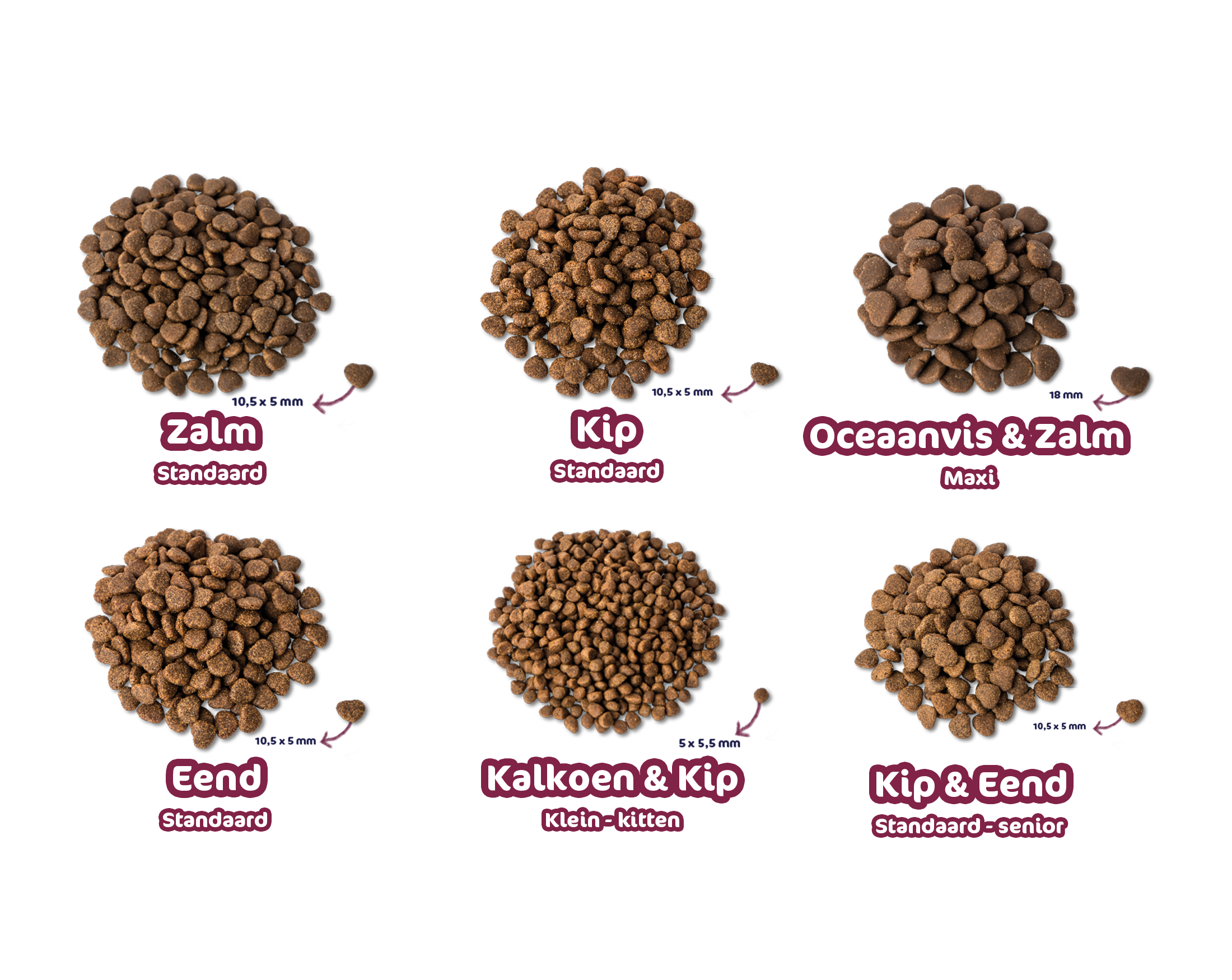 Ons droogvoer is zeer goed afgestemd op onze Vers maaltijden, zelfs de smaken komen overeen. Een combinatie van deze producten is ideaal. Dit geldt voor zowel onze krokante als onze koudgeperste brokken.