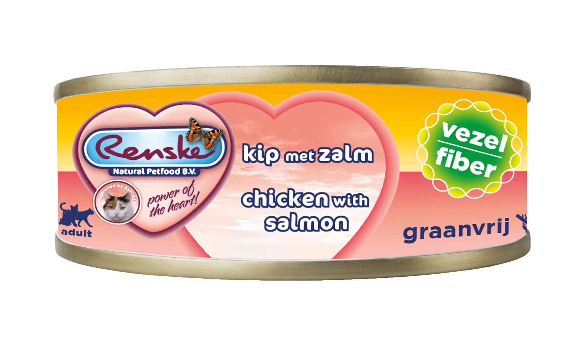 Renske kurczak i łosoś filety 70 g to smaczna, uzupełniająca mokra karma dla kotów. Ze względu na dużą zawartość kurczaka jest to bardzo lekkostrawny i smaczny posiłek. To karma całkowicie wolna od cukrów, soli, chemicznych konserwantów, barwników, wzmacniaczy smaku i aromatów.