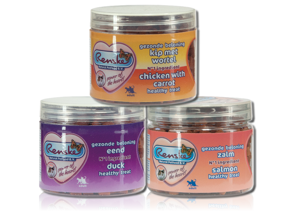 Smaczny, bezzbożowy przysmak dla kotów. Idealny jako odpowiedzialna przekąska. Przekąska w kształcie serduszka, której głównym składnikiem jest ryba lub mięso. Przysmaki są odpowiednie dla kotów wszystkich ras od 9 tygodnia życia. Idealne w połączeniu z różnorodnym menu Renske.