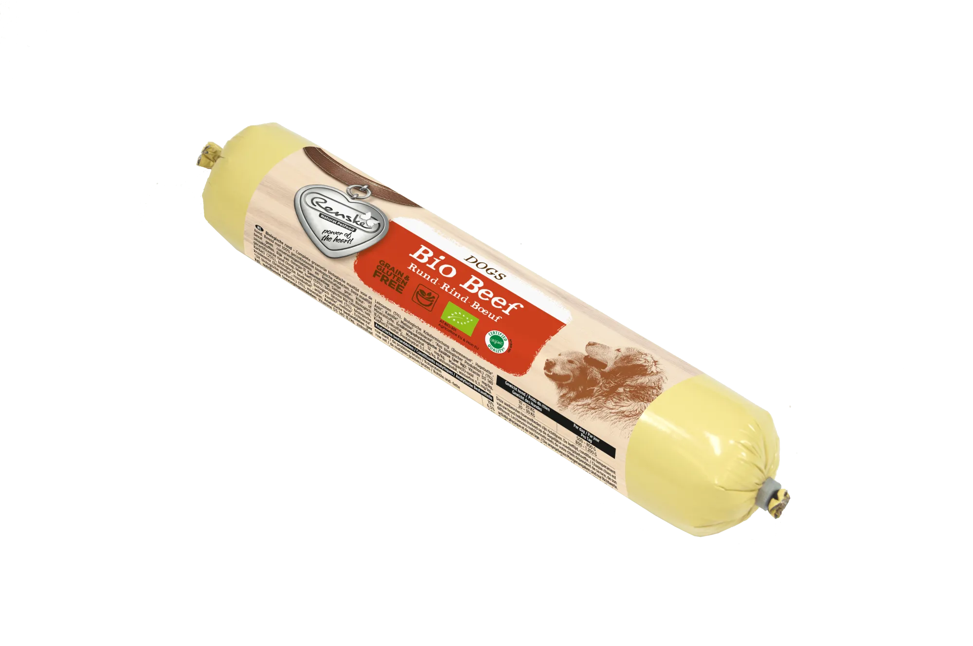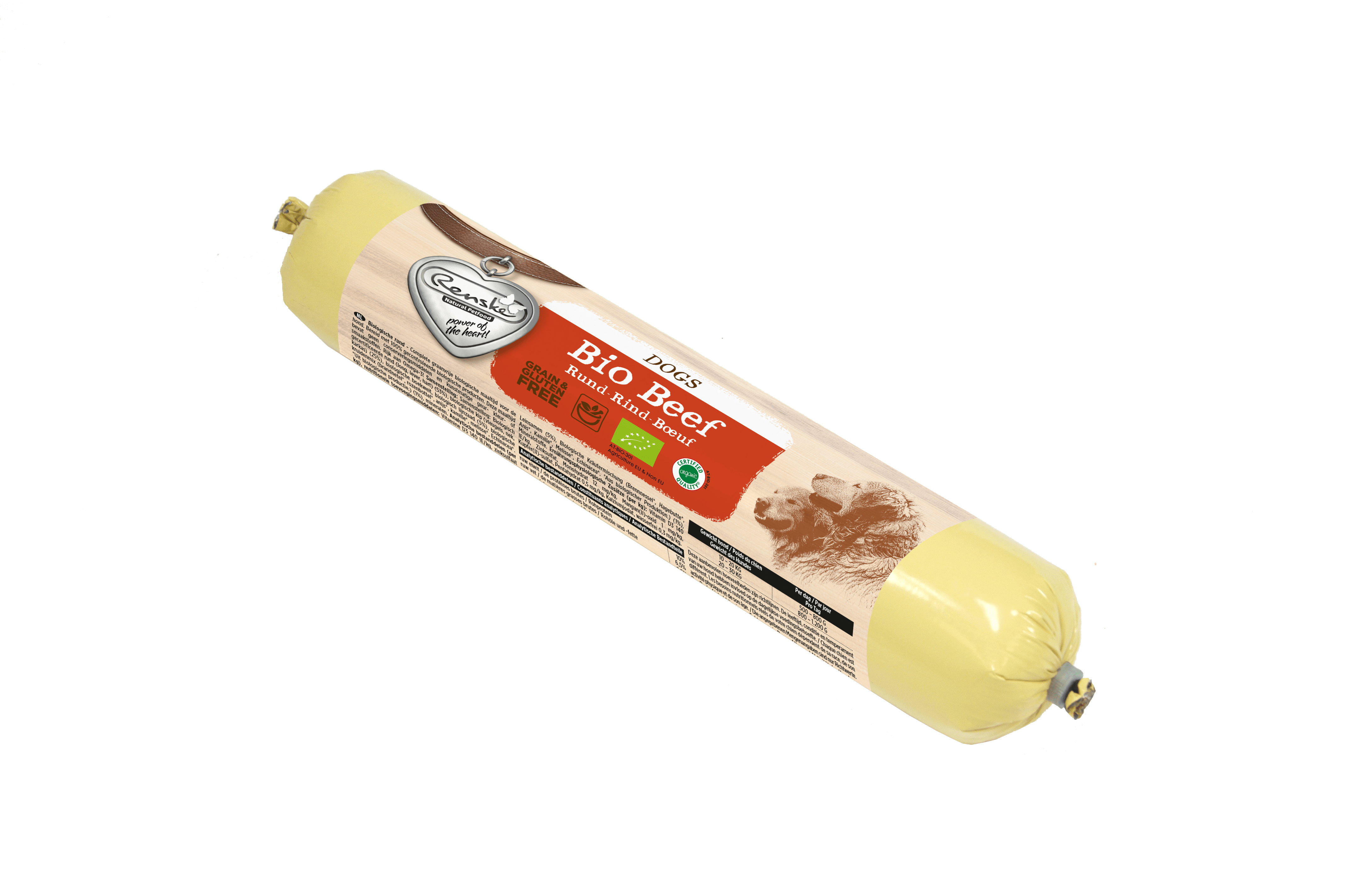 Wołowina ekologiczna (płuca, wątroba, serce) (53%), kurczak organiczny (skrzydełka, szyjki, tuszki) (25%), kasza gryczana ekologiczna, siemię lniane organiczne (5%), mieszanka ziół organicznych (pokrzywa, owoc dzikiej róży, anyż, rumianek, melisa, jeżówka (Echinacea)) (1%), minerały.