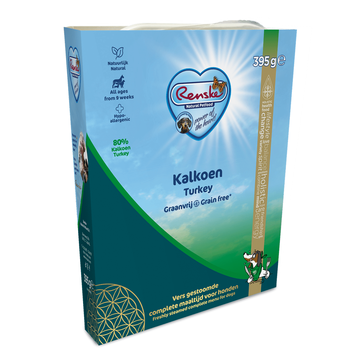 Renske świeże danie gotowane na parze Senior 7+ jest bezzbożowym posiłkiem dla starszych psów lub dorosłych psów o obniżonej aktywności, wszystkich ras.